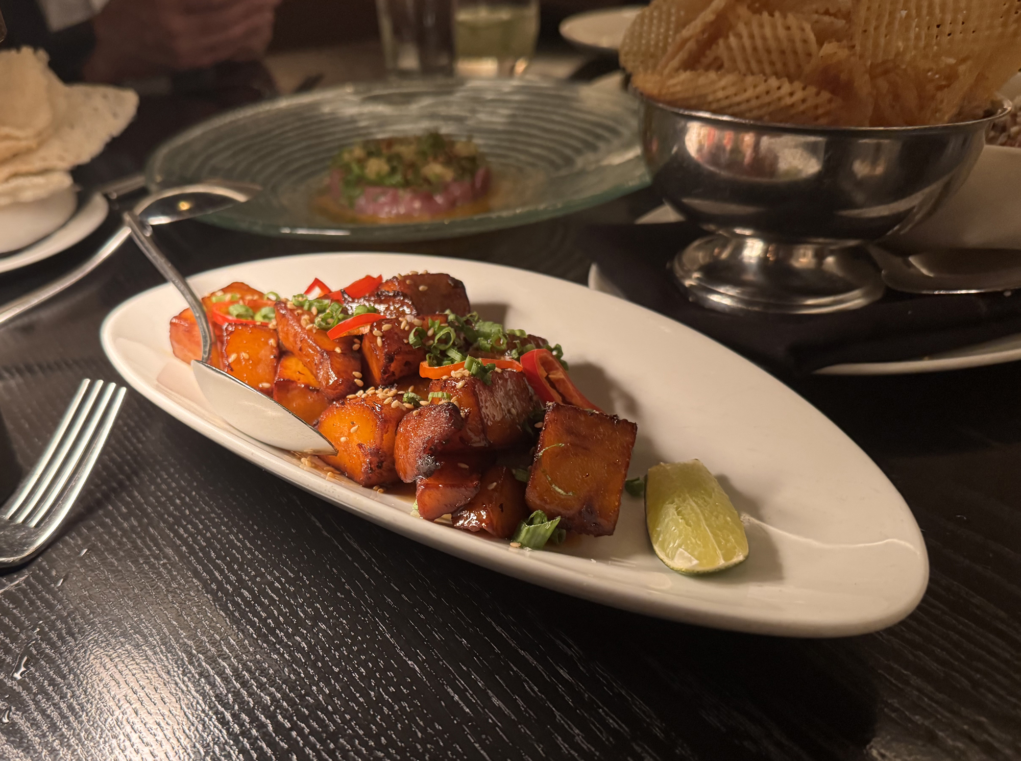 Contains: Japanese Sweet Potatoes, Sweet soy Sauce, Fresno Chili