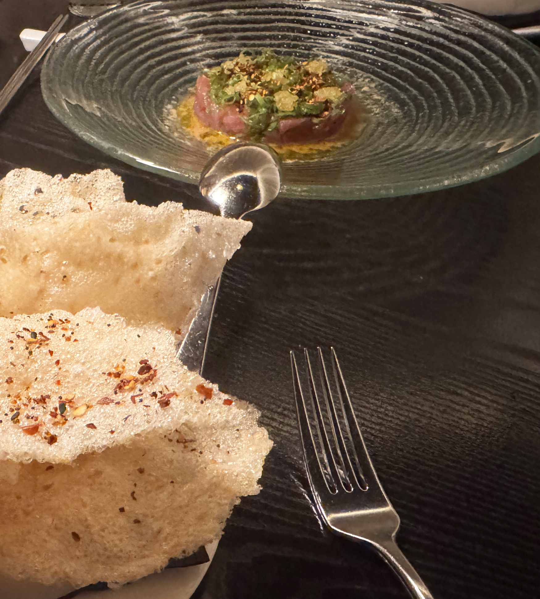 Yellowfin tuna, Ginger, Yuzu Ponzu, Togarashi Rice Crisp