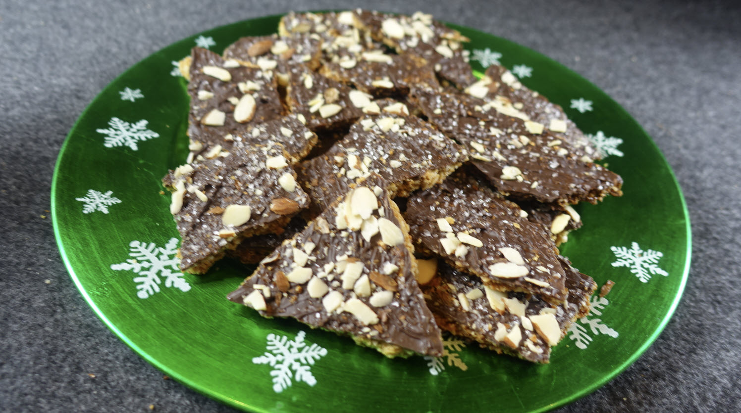 About the Recipe: The cookie brittle is crisp, has a toffee-like flavor, and fun to prepare. Who doesn’t like breaking up cookies into perfect serving pieces? They can be served plain or decorated with the nuts or sprinkles for the holidays.