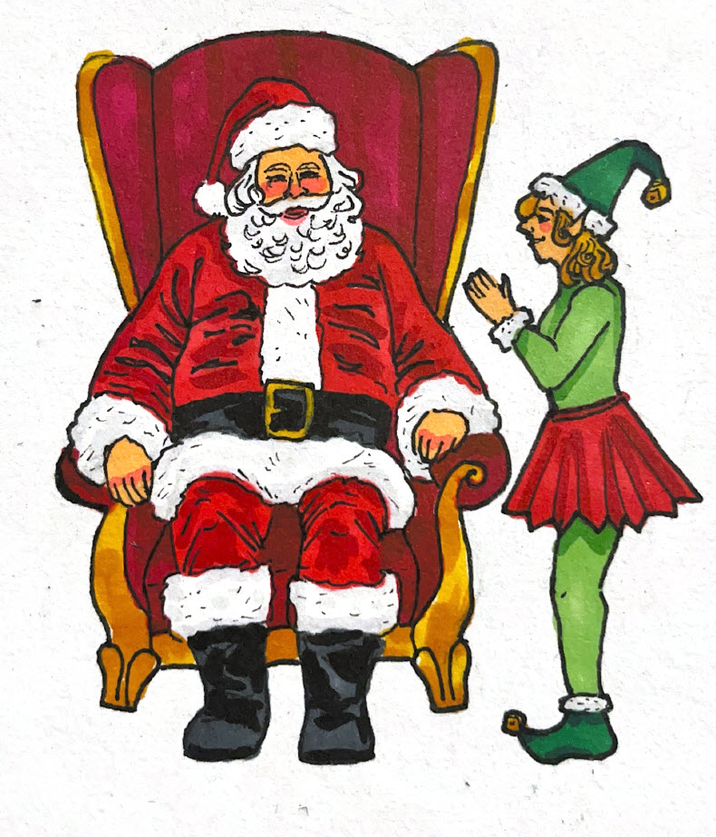Santa’s eyes lit up as he reached for a cookie. “You know, Elfie, I keep thinking about how much I enjoy the cookies that girls and boys leave out on Christmas Eve. I just love them. It would be so nice to know what they’re cooking up this year.”