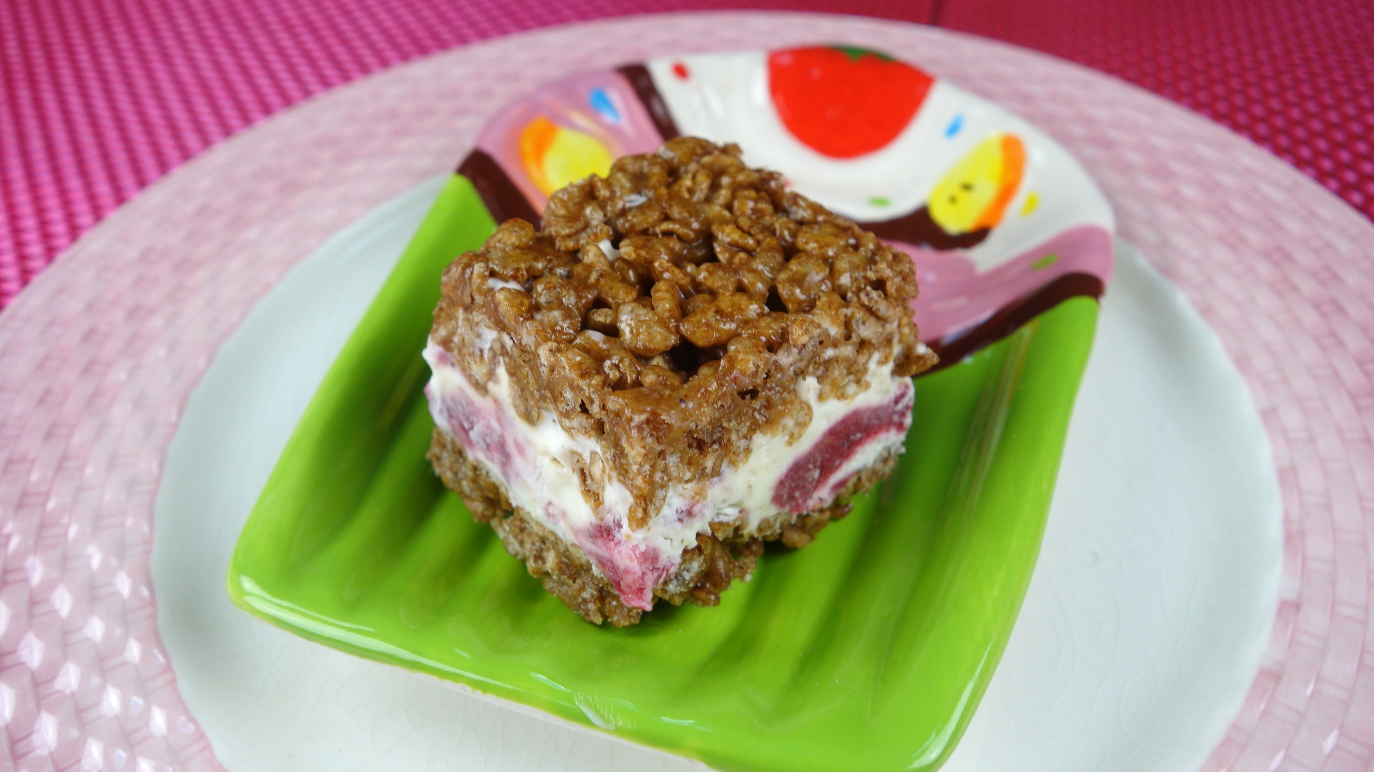 About the Recipe: This dessert couldn’t get any easier. Cocoa Rice Krispies cereal mixes with almond butter and corn syrup forming a crunchy crust that is filled with grilled strawberry or your favorite ice cream. Form into sandwich bars and keep chilled in the freezer until serving. You can even coat part of the bars with dark chocolate for a chocolate strawberry surprise. These are sooooooo delicious and refreshing.