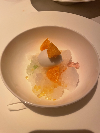 About the Recipe: Asian Pear Bingsu with Melon & Coconut Sorbet was a refreshing and visually stunning dessert, inspired by the classic Korean shaved ice treat. Fluffy, finely shaved ice was infused with the delicate, floral sweetness of an Asian pear, creating a light and crisp base. Topping the sauce were juicy, tiny melon pieces that added vibrant color and a burst of fresh flavor. It’s a delightful contrast to the creamy coconut sorbet and added a tropical note and smooth texture. The dessert was an elegant finish to a refreshing blend of cool, fruity, and creamy sensations.
