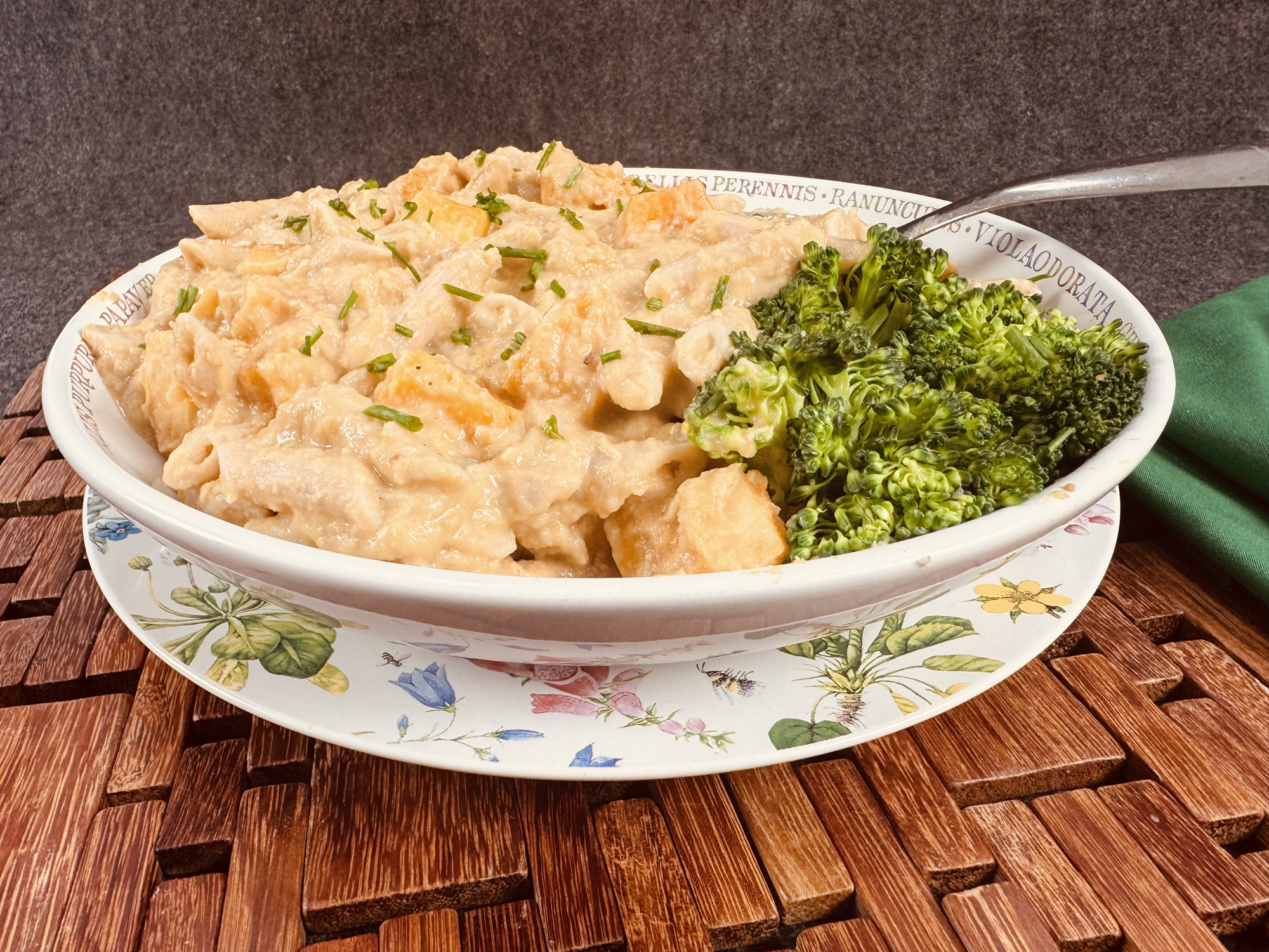 Cook’s Note: I was able to find cashew butter at our local supermarket, but it can be prepared from whole cashews. Our procedure was a little different from the original recipe as we roasted all of the squash in the oven. Also, make sure that you add enough liquid to make the creamy sauce. Pasta loves liquids.