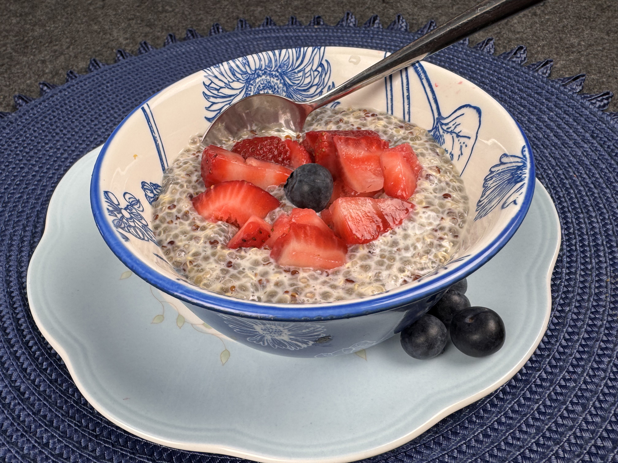 About the Recipe: If you want to change your diet and start eating some healthy desserts, this is a super one to try. It has quinoa, which is a nutritional powerhouse, gluten-free, packed with protein, fiber, and minerals. Then add some chia seeds, which have all nine essential amino acids, can balance blood sugar levels, contain lots of antioxidants, a complete protein source and yes, healthy fats. Combine all of this with some fresh berries and tasty flavors. Serve the pudding for desserts, snacks, or your breakfast menu.