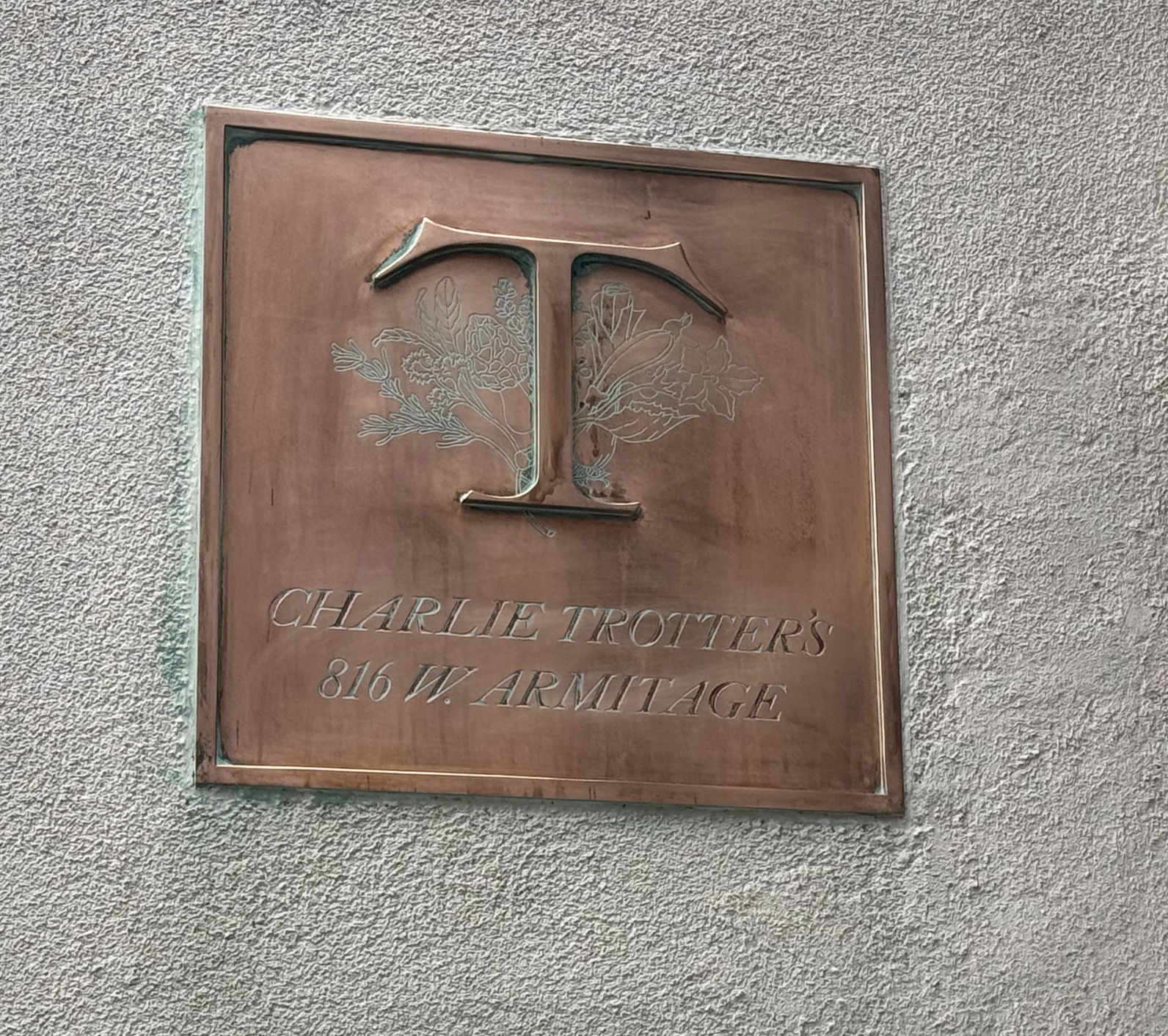 The Charlie Trotter logo affixed to the entrance of Charlie Trotter’s restaurant.