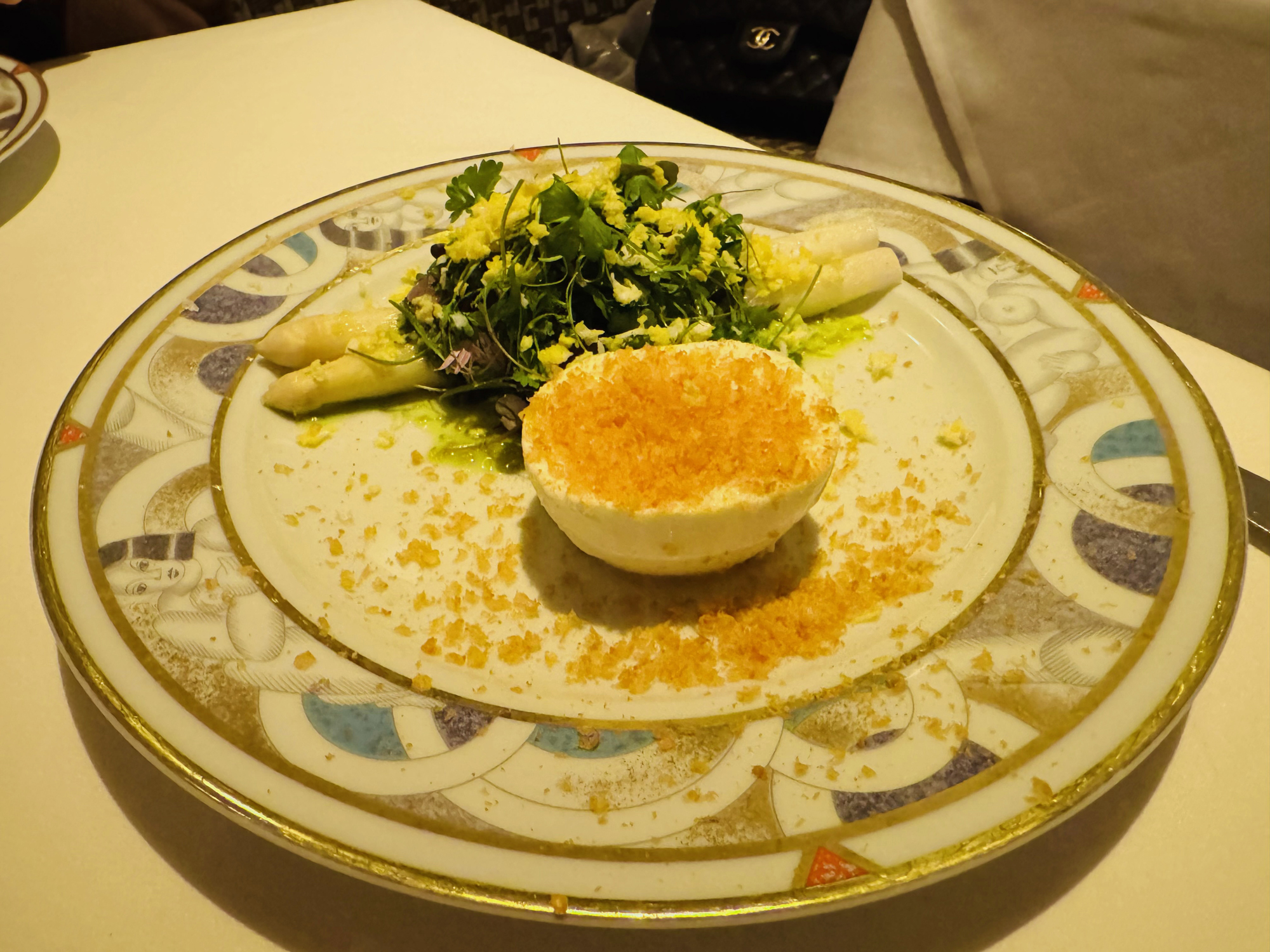 The first dish prepared by Nancy Silverton & staff – Mozzarella di Bufala with White Asparagus & Bottaraga.