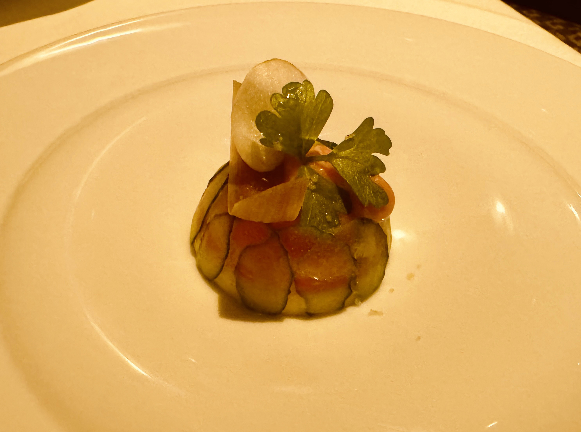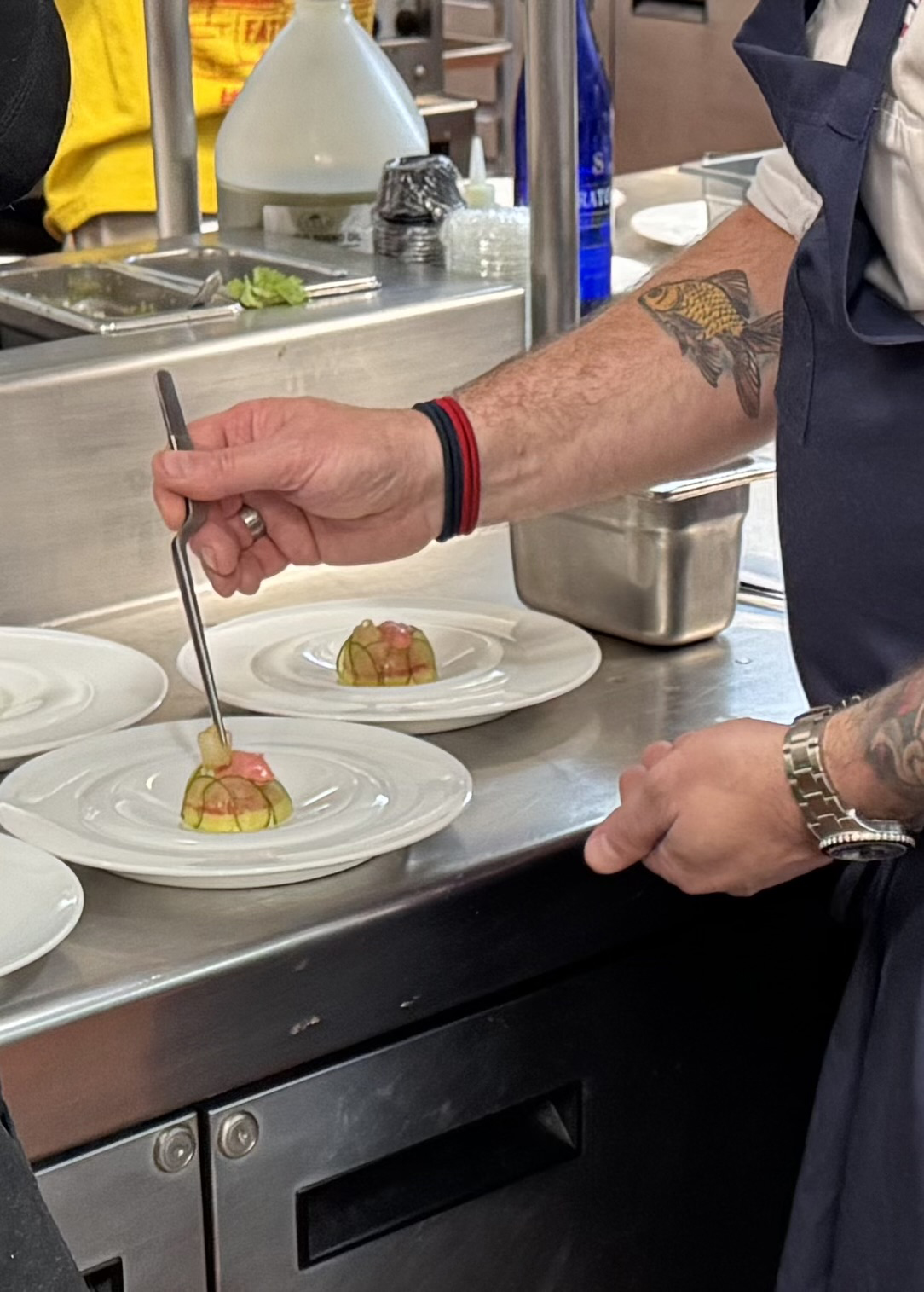 The first dish prepared by Chef Jamie Simpson & staff was “A Walk Through the Garden” – Spring Alliums with Spring Vegetables & Polanco Caviar.