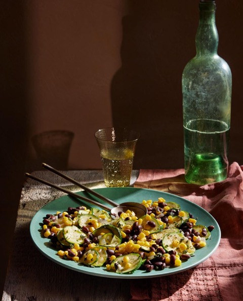 A vibrant salad filled with beans, corn, and zucchini that’s filled with traditional flavors