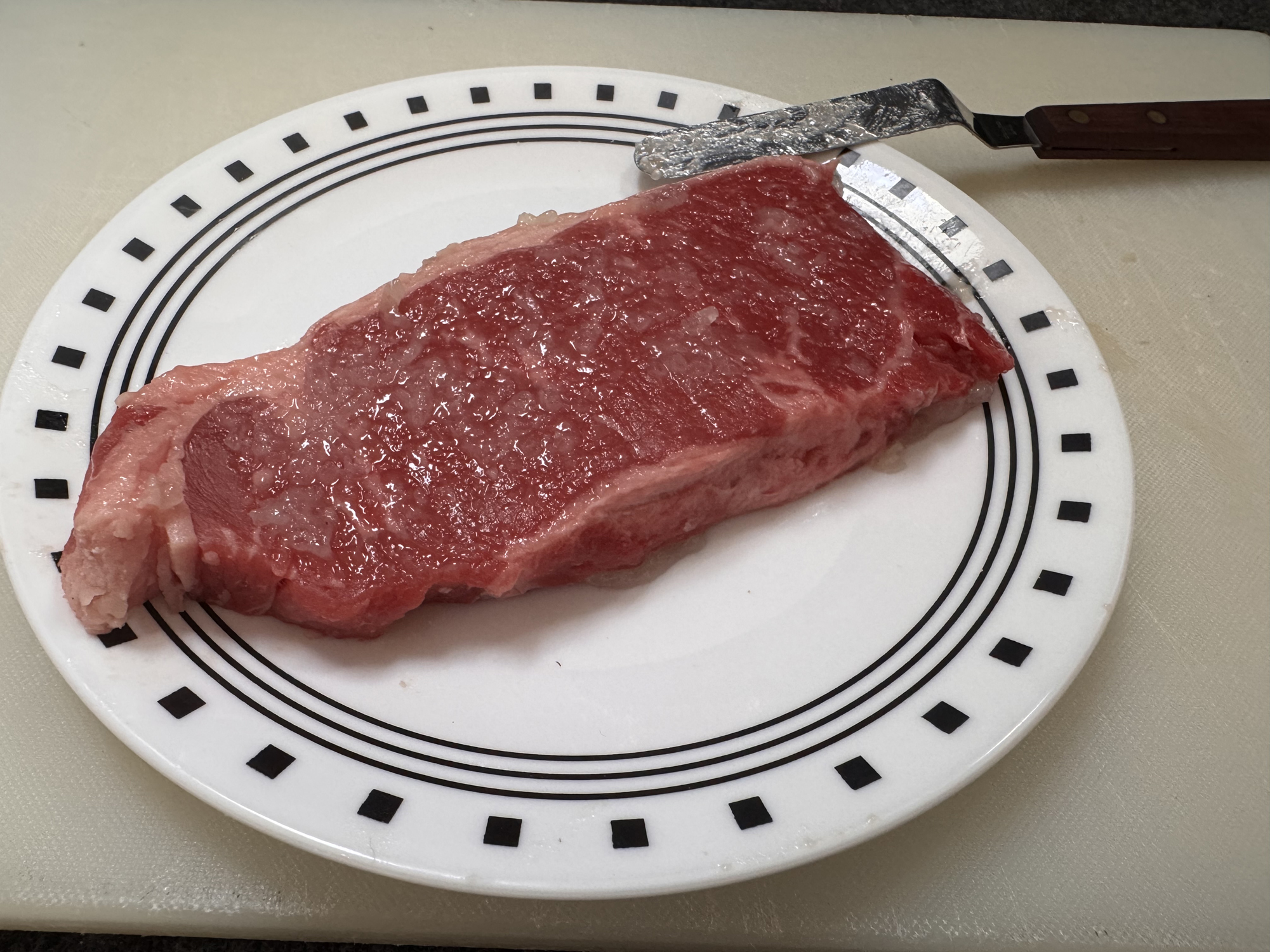 Koji Rice Marinade rub on Sirloin Steak as we were preparing it at home.
