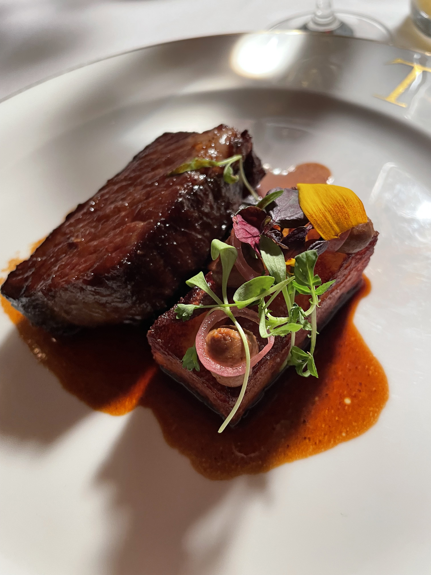 Koji “Aged” Beef Short Rib with Smoked Mushrooms & Potato Pavė by Chef Andrew Zimmerman as served at Charlie Trotter’s Koji dinner 0n Sept 28th.